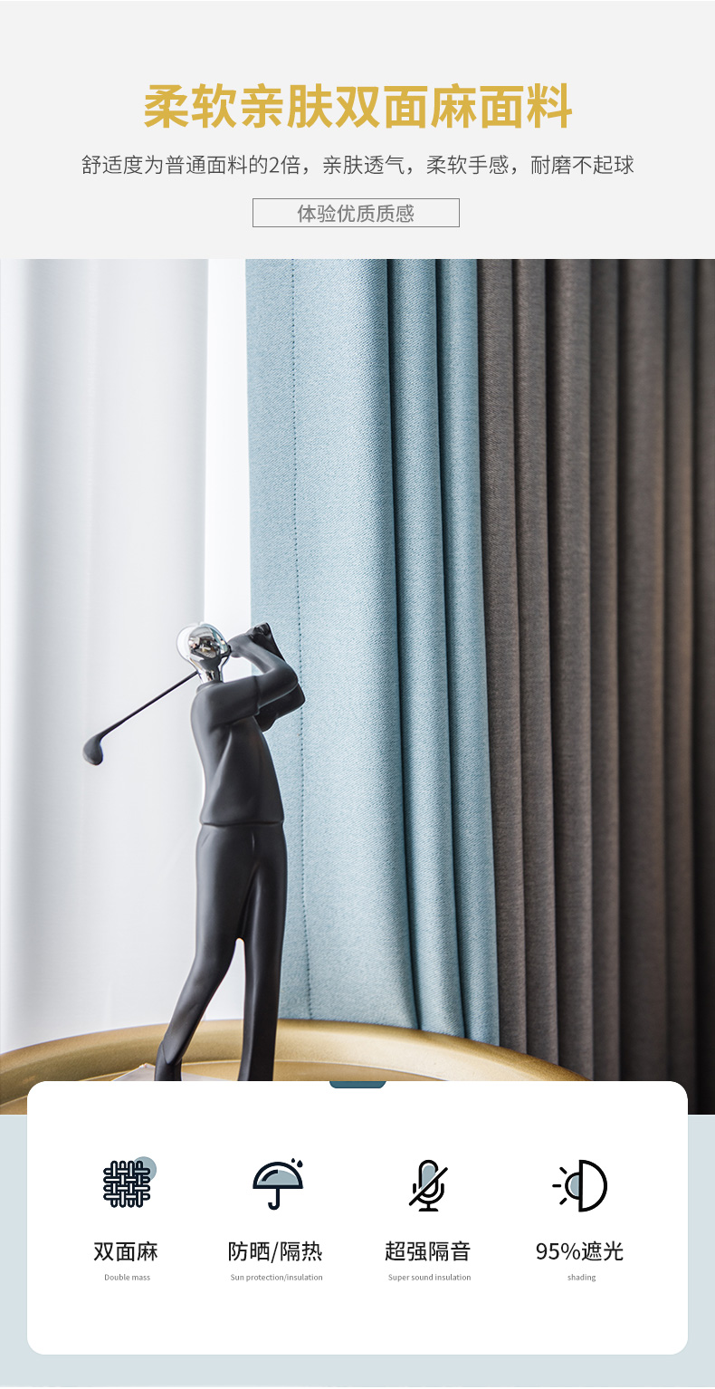 窗帘全遮光双面麻加厚窗帘2022年新款客厅卧室挂钩式现代